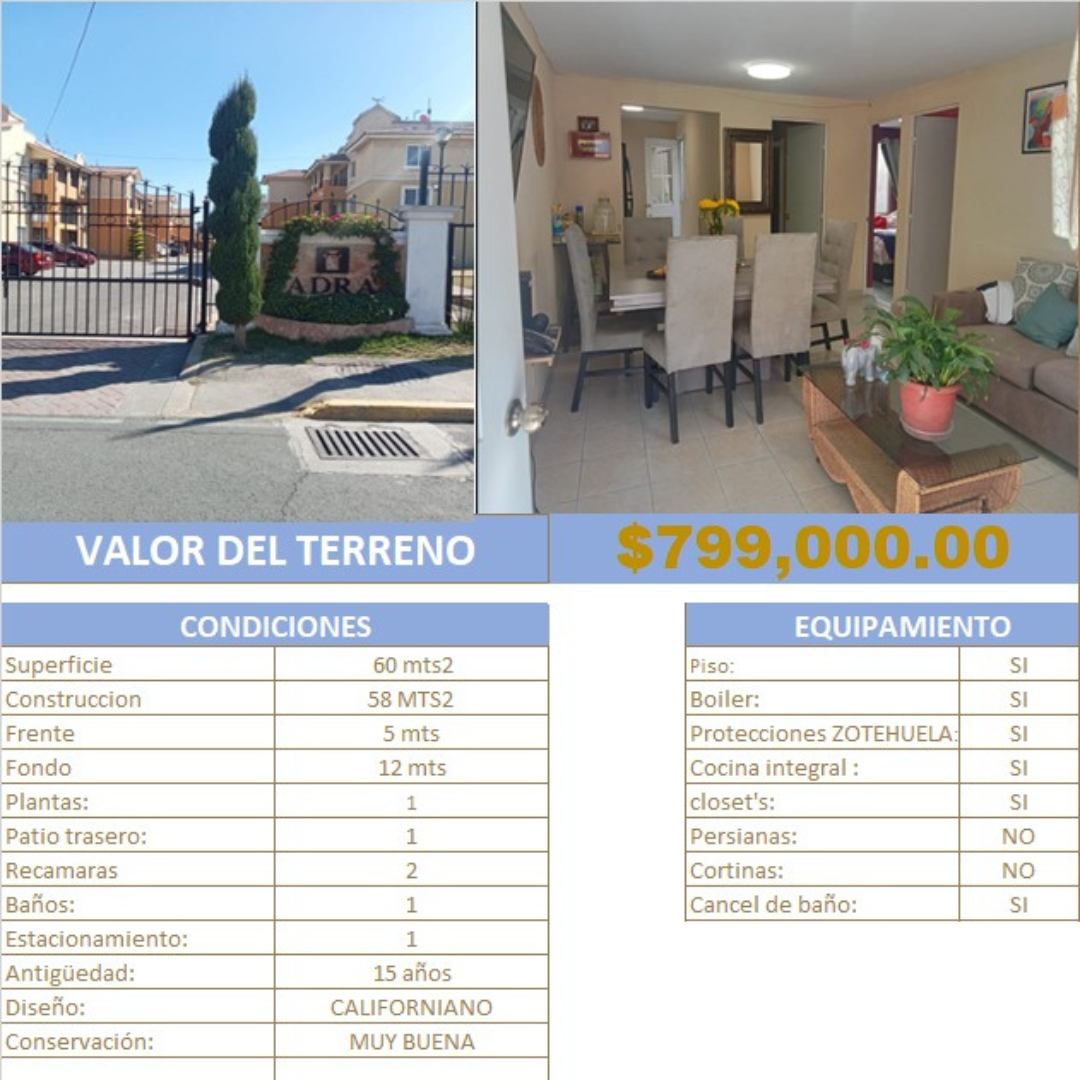 Cuenta con: Estancia sala y comedor Cocina 2 recamaras Baño conpleto Zotehuela 1 cajón de estacionamiento