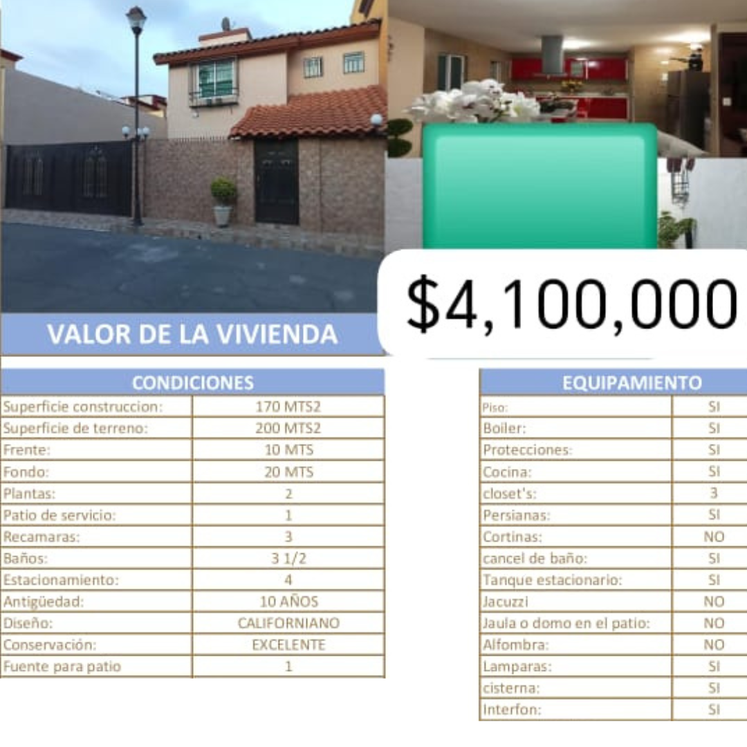 Cuenta con: Estancia sala y comedor Cocina integral Cuarto de lavado Patio lateral con excedente y con piso Patio trasero con piso Medio baño 3 recamaras con baño completo y Closets Tanque estácionario